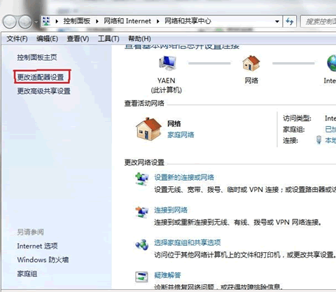 第七、进至左上方“更改适配器设置”