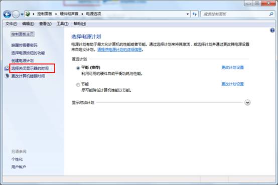 4.点击左边栏目中的“选择关闭显示器的时间”
