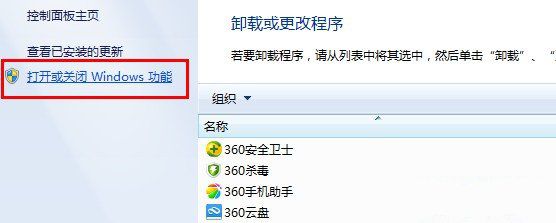 3、选择“打开或关闭windows功能”