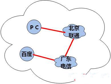 如下图所示,假设我们在北京访问百度http网站,ISP是北京联通,百度的服务器在电信,ISP是广东电信。如果没有连接VPN,那么全程数据都是不加密的,用红线表示。