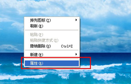 第一、于桌面空白的地方任何位置鼠标右击,选取属性。