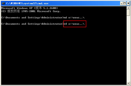 在CMD模式下,使用MD 命令建立文件夹,键入“md e:\news..\”,引号里的,注意,有二个点。回车后就可以看到在E :盘下有news.命名的文件了。