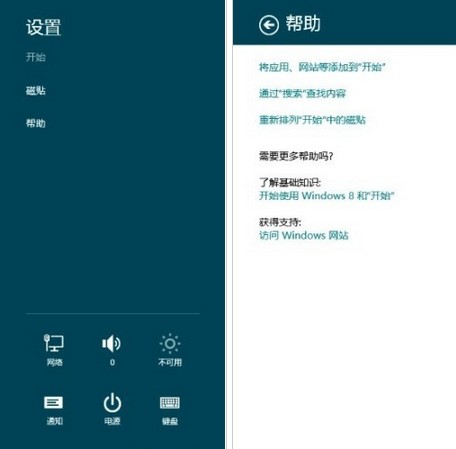 左图:Charm中的设置菜单 右图:Charm的帮助提示