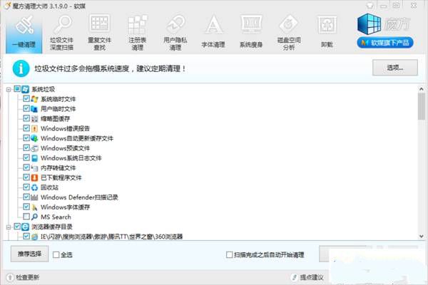 360安全卫士是大家用的最多熟悉的安全辅助软件,自带的系统清理功能也比较好用。