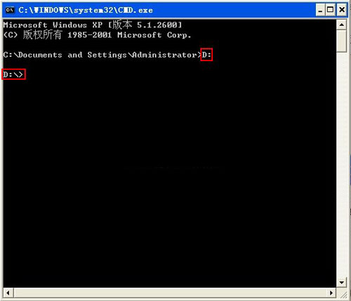 第二、例如说您需在D盘创建文件的磁盘,然后命令字符键入D:
