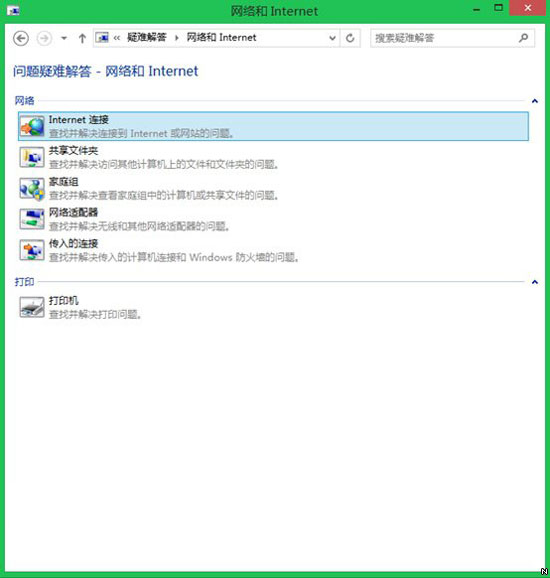 Win8.1内置了问题疑难解答功能,进入控制面板/所有控制面板项/疑难解答/网络和Internet,选择第一项“Internet连接”进行分析诊断,帮助用户进行排解,并显示各类的修复方案。