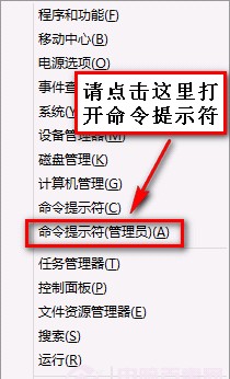 屏幕左下角会弹出一个快捷栏菜单,请您使用鼠标左键单击其中的“命令提示符(管理员)”,打开命令提示符窗口,如下图: