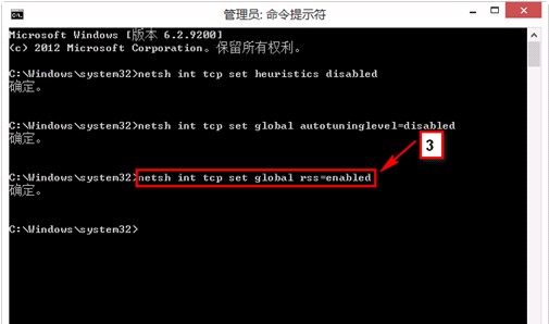 首先输入:"netsh int tcp set heuristics disabled"回车;
