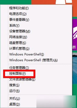1.window键+X组合键打开系统快捷菜单,然后选择控制面板选项。