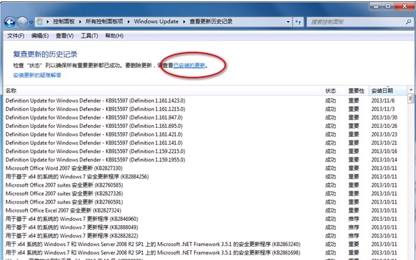 在这里我们是无法直接看到刚刚安装的IE11的,需要点击上方的已安装更新才行。