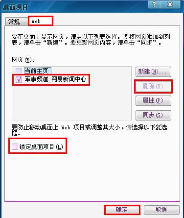 把“网页”一栏下面的所有打勾的项目的勾都去掉,或者把除了“当前主页”以外的所有项目选中后点右边的“删除”按键删除(注意“当前主页”前不打勾),同样去掉“锁定桌面项目”前的勾,然后点击下面的“确定”键退出。回到桌面查看效果,一般性99%的这类问题到此都可以解决。如果还没有解决,继续往下看绝招。