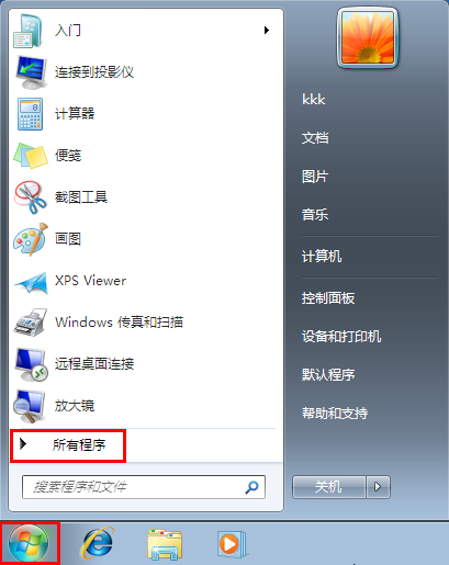 1.点击左下角开始菜单,选中“所有程序”