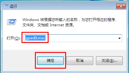 6.使用快捷键组合“win+r”打开“运行”,并输入“gpedit.msc”,然后确定。
