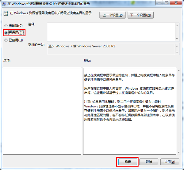 4.此时会打开如下画面,选择左上角的“已启用”选项,并按确定按钮保存退出