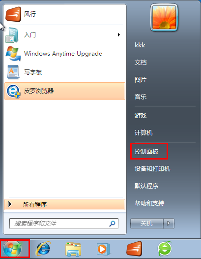 1.使用鼠标点击屏幕左下方的开始菜单,接着找到“控制面板”选项点击进入: