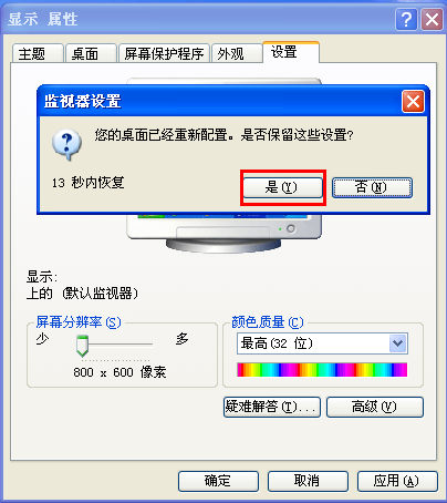3.此时会弹出提示,是否确定修改,点击“是”,就完成屏幕分辨率的设置了。