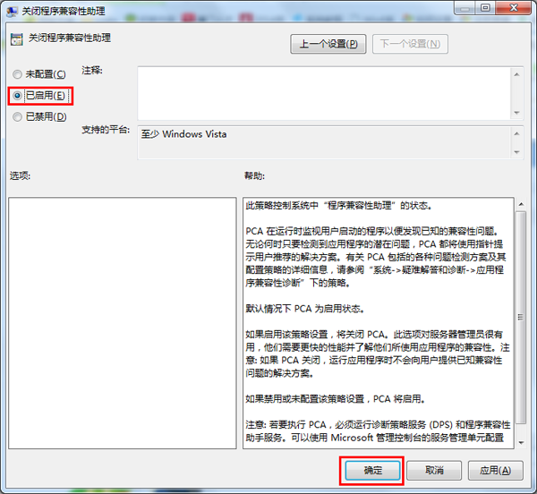 3.在左上角选择“已启用”选项,点击“确定”按钮保存退出。