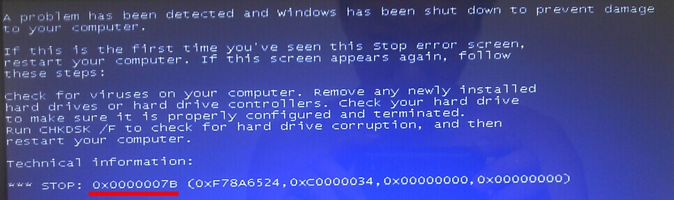 刚刚设置完bios重新启动电脑,弹出蓝屏错误代码0x000007B的蓝屏现象。如下图所示