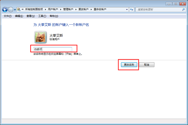 5.输入修改后的名字,点击“更改名称”按钮完成更改退出.