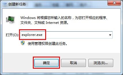3.在弹出的对话框中输入“explorer.exe”,点击确定,桌面就回来了。如下图所示