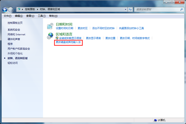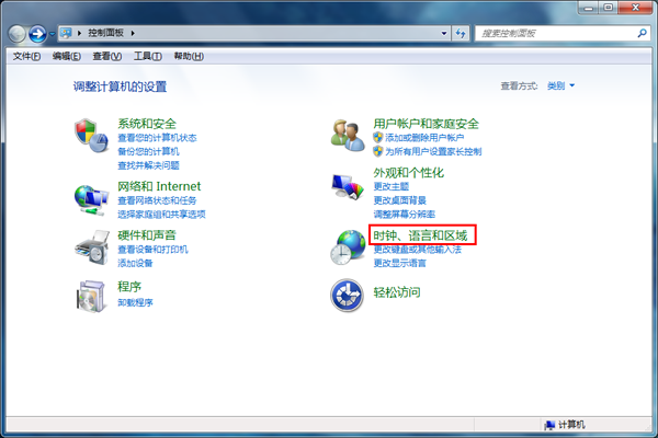 2.在控制面板中,点击“时钟、语言和区域”,如下图所示