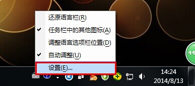 1.在输入法图标上右键选择“设置”。如下图所示