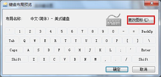 3.在打开的“键盘布局预览”窗口点击更改图标。如下图所示
