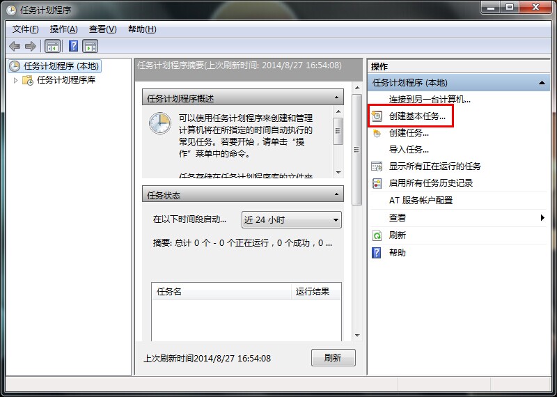 2.在打开的任务计划程序界面右边,我们点击“创建基本任务...”进行基本任务的创建。如下图所示
