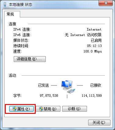 3.打开了本地属性 状态窗口,点击“属性(P)”打开属性设置界面。如下图所示