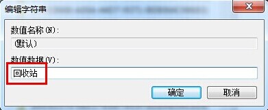 4.把右边的“默认”的主键的键值设为“回收站”,然后退出注册表即可。如下图所示