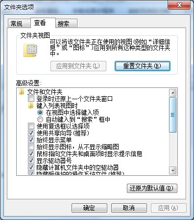 方法二:首先打开计算机 - 工具 - 文件夹选项(0) - 查看。如下图所示