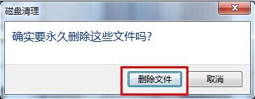 5.在磁盘清理窗口中,点击“删除文件”完成设置。如下图所示