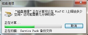 3.耐心等待磁盘清理计算win7(C)下可以释放多少空间。如下图所示
