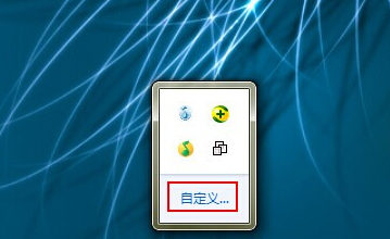 1.在桌面上找到任务栏,在任务栏中点击任务栏右边的小三角形,然后点击打开“自定义...”进入下一步操作。如下图所示