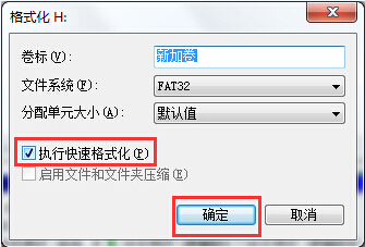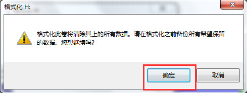 5.在弹出的警告窗口中,点击“确定”开始快速格式化u盘操作。如下图所示