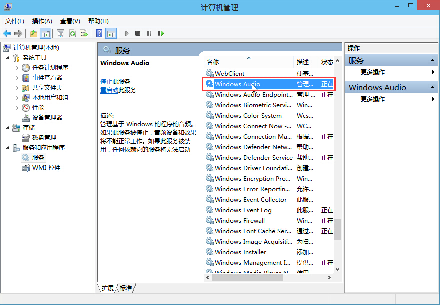 3.在服务窗口中,找到“Windows Audio”双击打开进入下一步操作。如下图所示