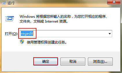 2.在运行窗口中输入“regedit”回车确认打开注册表编辑器。如下图所示