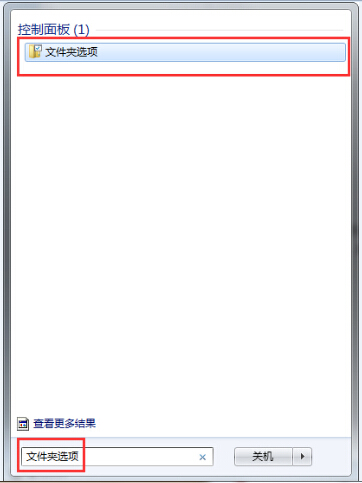 1.进入电脑桌面点击开始菜单,在搜索程序和文件栏里面输入“文件夹选项”点击打开文件夹选项。如下图所示