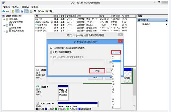 4.选择好所需要选择的盘符符号,点击确定完成操作。如下图所示