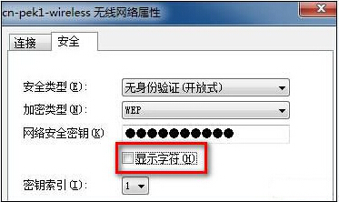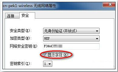 5.这边我们可以看到无线的明码已经显示在无线网络属性窗口中了。如下图所示