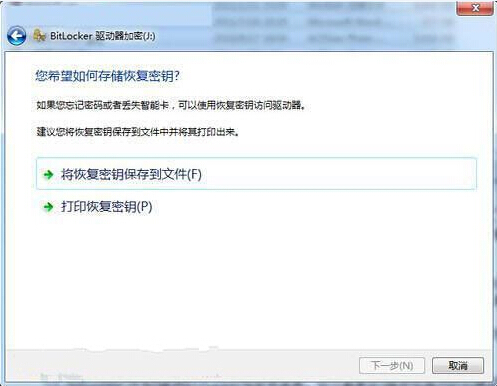 3.这里点击“将恢复密匙保存到文件(F)”进入下一步操作。如下图所示