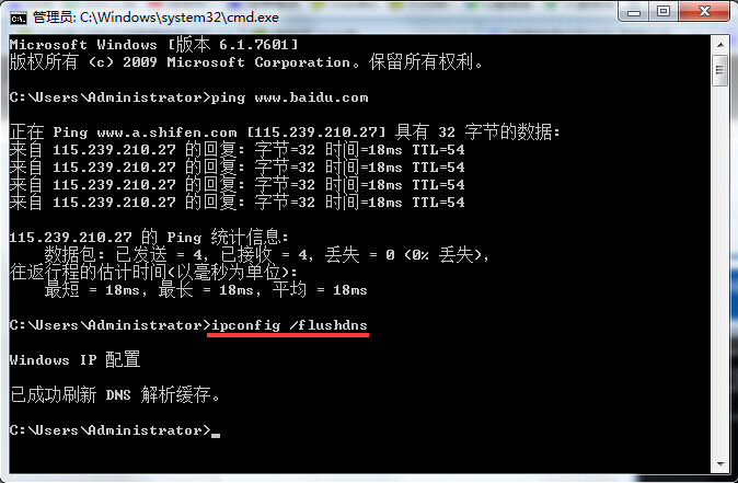 3.检测完网速之后,点击输入“ipconfig /flushdns”回车确认刷新DNS缓存。如下图所示