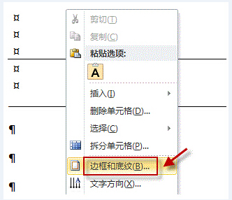 3.现在旧可以对着顽固小线条右键点击打开“边框和底纹(B)”进入下一步操作。如下图所示
