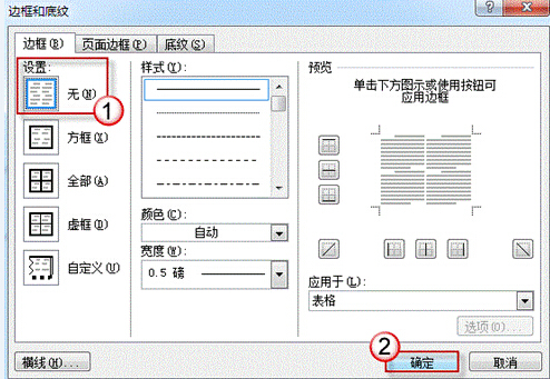 4.在打开的边框和底纹窗口中,将边框设置为“无”点击确定完成操作。如下图所示