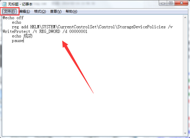 3.点击文件 – 另存为,将文件名改为“禁止拷贝.bat”然后保存类型选择为“所有文件”点击保存(S)进入下一步操作。如下图所示