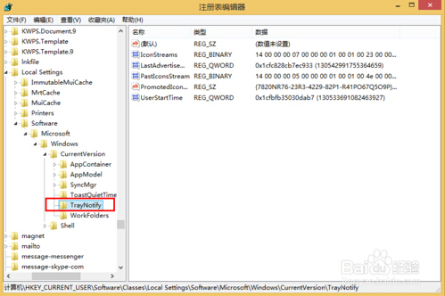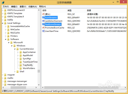 Settings\Software\Microsoft\Windows\CurrentVersion\TrayNotify如下图所示