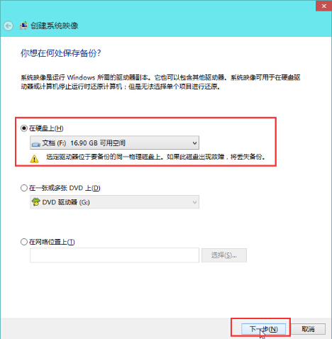 4.这里需要点击选择你想存放系统备份的磁盘。如下图所示