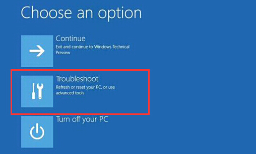 2.在“Choose an option”界面,点击选择“Troubleshoot”来到“Uninstall Preview updates”界面,点击选择“Uninstall”卸载更新完成操作。如下图所示