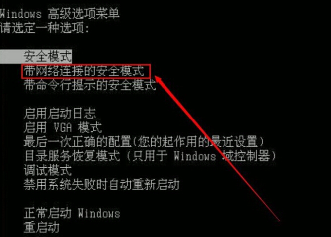 1.使用快捷键进入“带网络的安全模式”进入下一步操作。如下图所示