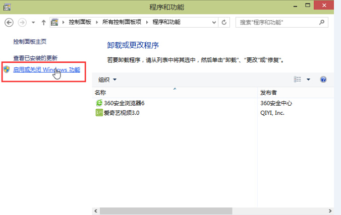 3.在打开的程序和功能窗口中,点击打开左侧的“启用或关闭windows功能”进入下一步操作。如下图所示